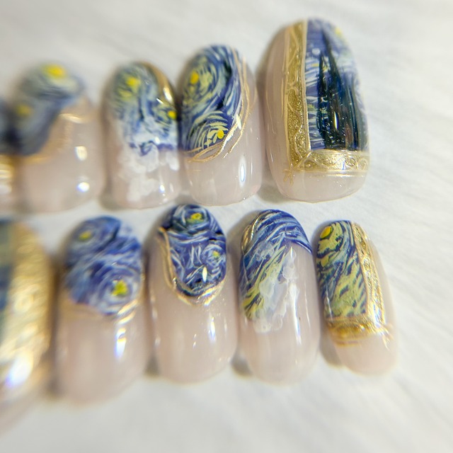 親指に細かいデザイン+他の指1本に簡単なアート+その他の3本はワンカラーのチップです。 好きなアニメ、キャラクター、アーティスト、曲などをイメージしてデザインします。 また、推しのCDジャケットを描いてほしい・好きなパッケージを作成してほしいなど細かすぎて無理かな‥と思っても、とりあえずご相談ください♪ 推し活をしている方、ライブやお出かけ前のネイルにオススメです♪ ※デザインや事前準備がございますので7日前までにご予約いただき、事前に作成したい画像などをお送りいただきます。 ※キャラクターなどの細かいアート2本その他簡単なアートがおまかせで付きます。 アート追加で別途料金がかかります。 ※簡単なアート2本とは…ホログラムやラメ、ミラーライン、簡単なモチーフ(お花・リボンなど) ※細かいアート追加価格1本につき3300円(税込) アートオプションの商品を本数分お選びください。 フルオーダーのオリジナリティ溢れるオーダーネイルチップ! あなただけのデザインを手に入れませんか?シンプルなカラーチップから、キラキラ輝くジェルネイル風まで、幅広いバリエーションをご用意しております。自宅で簡単装着できるので、繁忙期でもサロンに行かずに手軽にお洒落を楽しめます。お友達とのお出かけやイベントにぴったりなアクセントネイルにしてみてはいかがでしょうか?ワンランク上の指先を演出するオーダーネイルチップで、今までにない華やかな魅力を手に入れましょう! ※長時間の水浴びや強い衝撃にはご注意ください。 普段ネイルが出来ない方でもチップなら取り外し可能ですので いつでも簡単、手軽に爪先のオシャレが楽しめます! 自分だけのネイルチップをお作り致します。 推し活・旅行各種イベント用にいかがですか? 出品者はJNECネイル検定3級・ジェルネイル検定初級を所持しております。芸大出身なので細かいイラストを得意とします。施術も定期的に行っております。 ここの画像以外にもX、Instagramにて日々更新中です。気になりましたらご連絡ください。 イメージが固まっていない、 これをモチーフとしてデザインを考えてほしい、 こんな感じのネイルチップは出来る?など イメージを形にさせて頂きます。 相談だけでも大丈夫ですので、お気軽にお問い合わせ下さい♪ 丁寧に真心を込めて作成させて頂きます♪♪ ~オーダーの流れ~ ①お問い合わせ・DM・LINEからデザイン相談 ②サイズ決定(例:右 3.5.5.7.9・左 3.5.4.7.8) ③ご入金確認後作成。 ④完成写真添付→確認して頂き発送 ・長さ調整・立体パーツコミコミ価格♪ ・当店はマシンサンディング(カラーの浮き、剥がれがないようにする為の工程)をし、仕上げにはクリアジェルの二度塗りを施しています。 また、使用ジェルは全てプロ用の物を使用しております! ・長さ調整・3D手作りパーツ・ストーンコミコミ価格です。安心してお求めください。 たくさんの人の大切な日に寄り添えるような素敵なネイルチップを作成させて頂きます♪